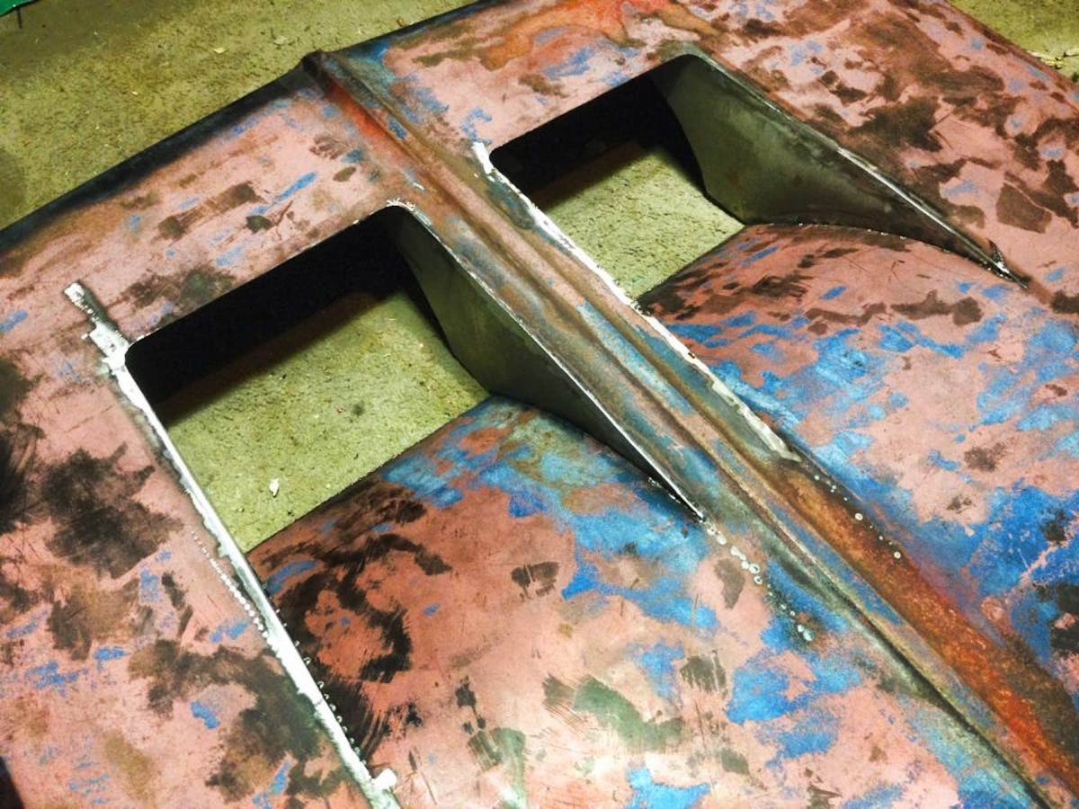 That frame turned out to be surprisingly straight, but was never intended to handle what Dowd had in store for it. To prepare for what was to come, a full five- by six-foot heavy gauge steel plate was welded in under the cab, the bed area was reinforced with an x-brace made from roll cage tubing (with steel plate reinforcement of the bed for good measure) and ahead of the firewall, the frame was boxed for strength.