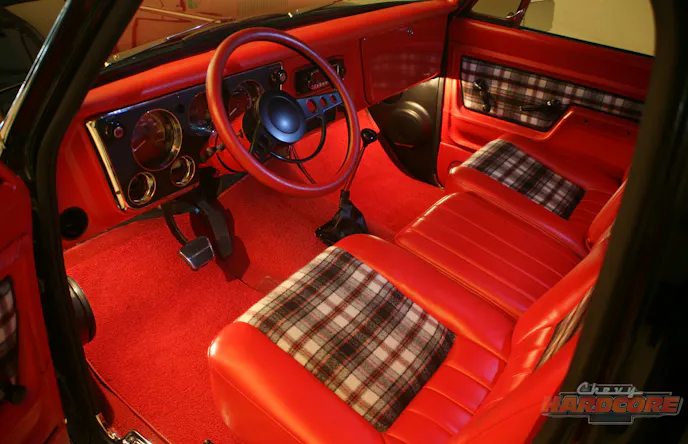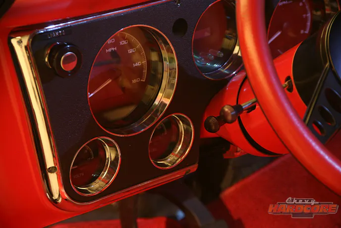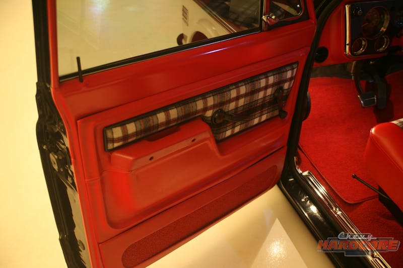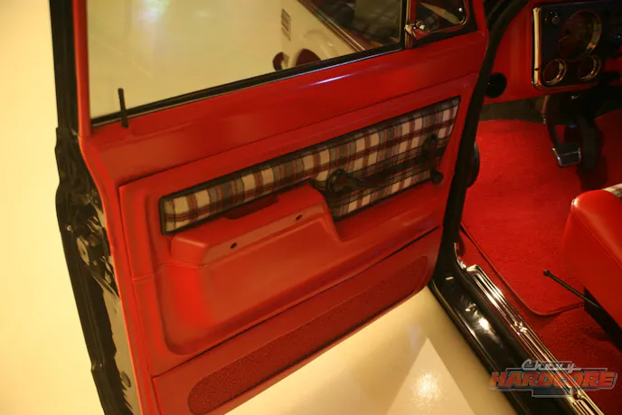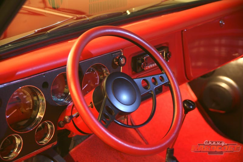 While upgraded interiors were new for late-‘60s trucks, this one takes that idea to an entirely new level. Before you even get close enough to take a look inside, the bright red interior grabs your attention and doesn’t let go. While a single-color material might have been okay, the mixture of red with the plaid inserts delivers a much more classically modern look. Details like the Billet Specialties steering wheel, Dakota Digital gauges, and Vintage Air A/C boost this hauler’s drivability quotient into the stratosphere.