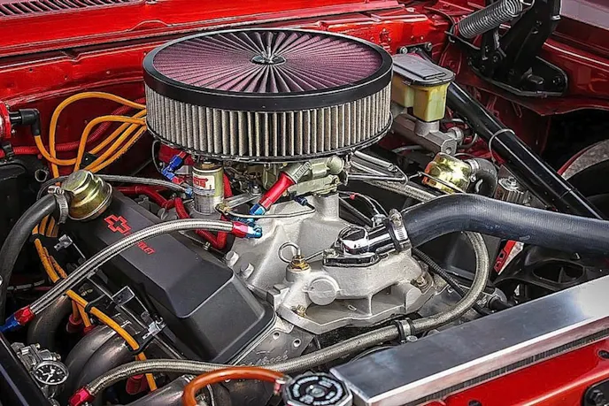 He freshened up the engine to prepare for a season of drag racing competition. That engine is a 406 cubic inch small block Chevy, based on a 400 block. A Lunati cam bumps the valves, the aluminum cylinder heads are from Edelbrock. Compression ratio comes in at 10.5:1, and Frazier runs the car on pump gas. There’s also a plate nitrous system providing an extra kick for those quarter mile passes. The claim was that the engine was assembled by a NASCAR shop in North Carolina, however by whom exactly is not known to Frazier.