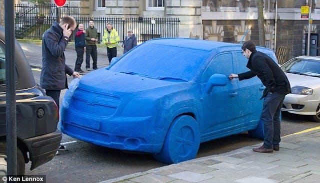 It was only a matter of time before someone got the crazy idea of taking this wonderful kids craft material and making a life-sized car with it. We found that example whilst surfing the net for odd-ball marketing schemes. After seeing the end result, we found the creative marketing piece that we had been looking for.