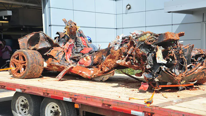 One of the Corvettes to suffer the most damage was this 2001 Mallett "Hammer" Z06. It was determined to let its remains tell the story of the forces and pressure at play during this seismic event.