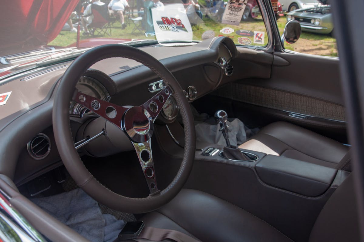 Part of the reason why Larry widened the body was because of the wheels that he wanted to use. “Most of these early model Corvettes have flat wheels on them,” Larry explained. “The reason is, they need a lot of back spacing to get the wheel tucked under the body. We used a 20×10 on the back and an 18×8 on the front. In order to do that, we needed to widen the body.” Larry doesn’t like the flat-wheel look, so for him, it was worthwhile to make that major modification to get the wheels to fit.