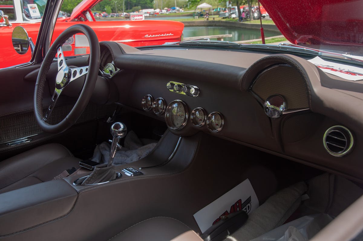 Part of the reason why Larry widened the body was because of the wheels that he wanted to use. “Most of these early model Corvettes have flat wheels on them,” Larry explained. “The reason is, they need a lot of back spacing to get the wheel tucked under the body. We used a 20×10 on the back and an 18×8 on the front. In order to do that, we needed to widen the body.” Larry doesn’t like the flat-wheel look, so for him, it was worthwhile to make that major modification to get the wheels to fit.