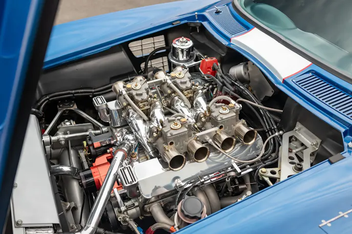 Since this is a tribute car and not a reproduction, some allowable upgrades serve to make the car better than what one could have in 1963. While this car features a lightweight, aluminum 377 cubic-inch small-block Chevy V8 just like the original Grand Sports, this car features many upgraded internal engine components to give all that power some longevity, something the original Grand Sport engines didn’t enjoy.