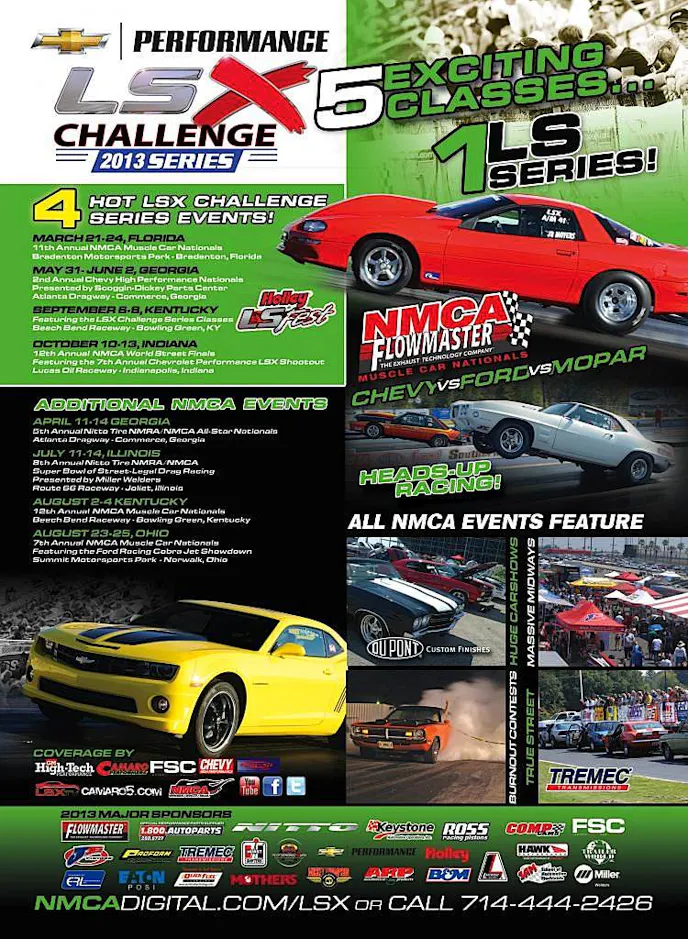 For more information on the Chevrolet Performance LSX Challenge Series, including class rules and car show information, log on to NMCA.
