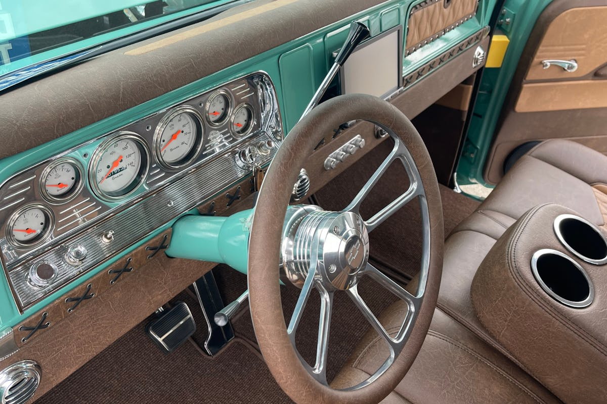 So striking was the design that Terraza extended the VXR insert pattern into other areas of the build. Matching inserts appear on the headliner and even as floor mats, creating a level of interior consistency rarely achieved. Judge Chris Baker of the C10 Nationals praised the concept, noting the impressive mix of materials and the innovative use of the insert design.