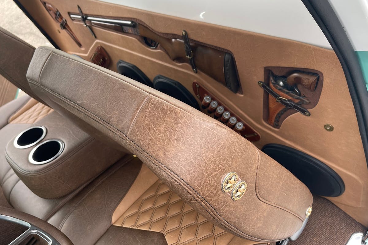 The speaker box stands out for its dual function, doubling as a tasteful gun rack. Two revolvers and a shotgun mount seamlessly into the panel, blending form and function in a way that is both creative and unique. Smalls’ dedication to detail and cohesive design secured his place as the final stop winner on the 2025 TRIM Road Tour.