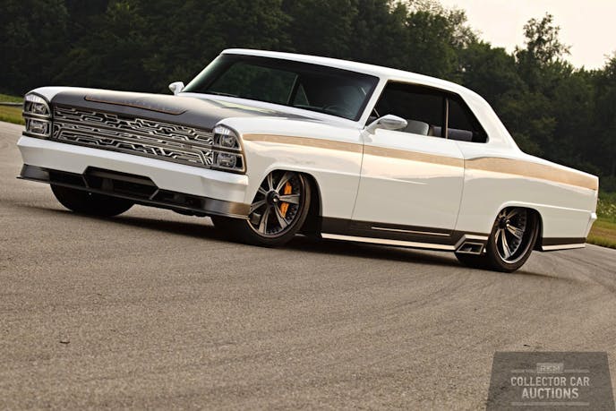 Our friends at RK Collector Car Auctions clued us in on a recent sale at one of their auctions. A highly customized 1967 Chevy Nova sold for $300,000 at the gavel. This was not your average run-of-the-mill Novas however. This specimen was handcrafted by the legendary Roadster Shop in Mundelein, Illinois. Known for their cutting edge and unique designs, this Nova features work that was uncommon at the time of it’s build.