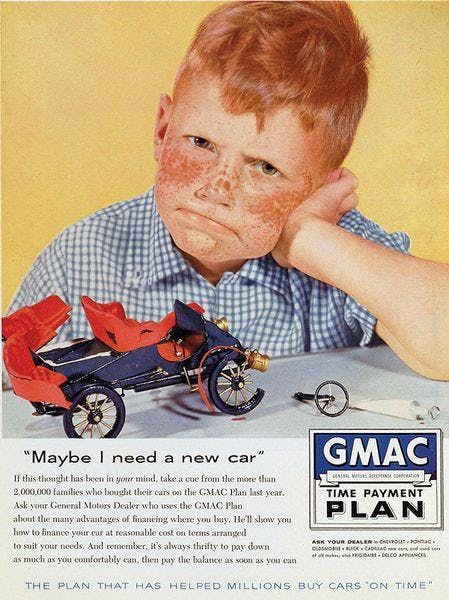 An early GMAC advertisement. Photo from {link=https://www.autonews.com/article/20080914/OEM02/309149921/financing-pioneer-put-more-people-in-new-cars}www.autonews.com{/link}