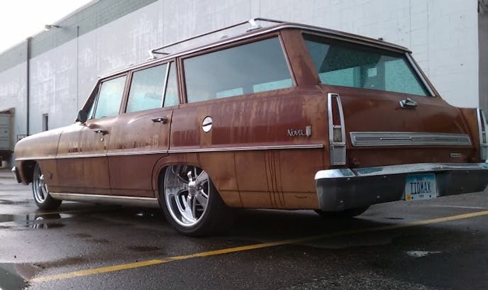 When you think of wagons you don’t really think of torque creating monsters. Instead you think of a family car that is very easily overlooked by car enthusiasts. Trust us when we say, you won’t forget this wagon! Let us introduce you to Blake Hughes’ ’66 Nova Wagon, which hides a little secret under the hood. The wagons factory engine has been replaced by a 6.6L Duramax Diesel that produces an estimated 550 horsepower and an astronomical 850lb-ft of torque!
