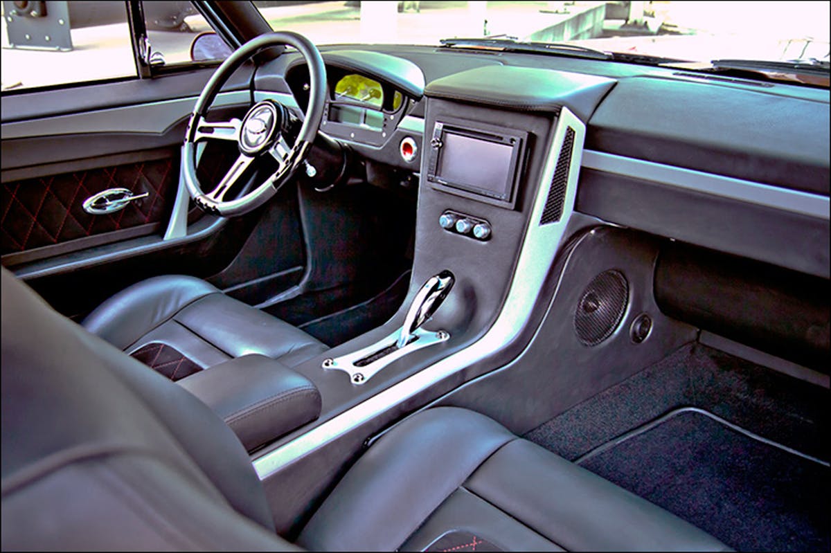 Enthusiasts have a myriad of option when it comes to suspension upgrades, and Detroit Speed & Engineering (DSE) got the nod for this first-gen. The entire front clip was replaced, adding late-model technology with the best DSE has to offer. The rear suspension is also DSE-eqquiped and utilizes a QUADRALink rear suspension. That means it is no longer sporting leaf springs, as coilovers with a four-link soften the ride. Braking is via Baer six-piston calipers with 14-inch rotors behind 18 and 19-inch Forgeline wheels wrapped in Bridgestone Potenza tires.