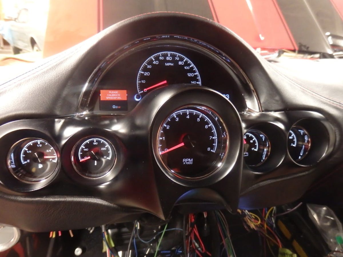 The ’68 Camaro’s interior is where the owner will spend most of his time, and the list of customizations is nearly endless. The shop used TMI Products’ door panels, and Lester covered them in a design created in-house at Precision. The dash is from a C1 Corvette, upgraded with Dakota Digital HDX gauges. You’ll also find other countless custom touches like push-button start, stereo-bass control, and overhead map lights. The trunk is also custom outfitted and is equipped with JL audio 10-inch subs and amps.