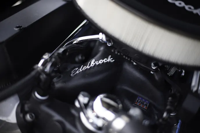It’s been 9-years since Robert bought the car, and it’s come a long way since then. Instead of the lack-luster small-block, Elvira now has the heartbeat of a 496 cubic-inch engine with Edelbrock E-Force heads, an Edelbrock RPM Performer air-gap intake, and an 850cfm Quick Fuel carburetor. With an 11:1 compression ratio and oval-port heads, performance at the low-end and mid-range RPM is great.