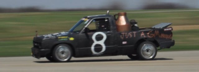 They did not win, but boy, did they show in a 21-year-old S-10 with a stock 2.8-liter V-6. The Loose Lugs Racing team finished 31st of 71 total cars, with their best lap time coming in at 1:51.6. The team had a lot of trouble during the day, but scored huge by getting the Judge’s Choice Award.