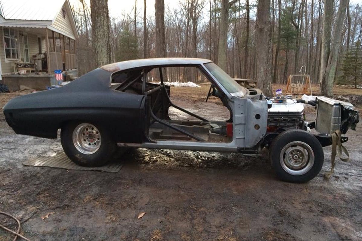 Everyone has a reason for building a car that ultimately brings them joy and satisfaction. For some, that satisfaction is derived from finishing a custom lead-sled or a street rod. For others like Jody Sheeder, it requires classic Chevrolet muscle. IMG_1894That’s why he chose to build this 1970 Malibu that he purchased back in 2008. The car was a former drag race car that had been beaten and bruised from years of dragstrip pounding, and he and his wife Sunny purchased the car with plans that it will be freshened-up, and once again make passes down the dragstrip. When Jody purchased the Chevelle, it was fitted with a stout small-block, but that is being replaced with a 454 cubic-inch big-block that has been opened up to 496 cubic-inches. The engine is filled with parts like; an Eagle rotating assembly, SRP 12.0:1 pistons, a Bullet solid-roller camshaft, a Sniper Profiler intake, 1050 Holley carburetor, and a Milodon oil pan and windage tray. Jody tells us the engine made 700 horsepower when dyno tested.
