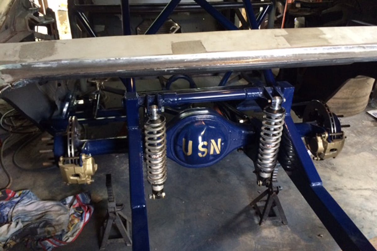 The car is still under construction, and Jody tells us that his thoughts about a theme for the car reflect on all the Navy men and women that he served with. That is why he decided to paint the car Navy Blue, and add their names to the car in gold lettering.