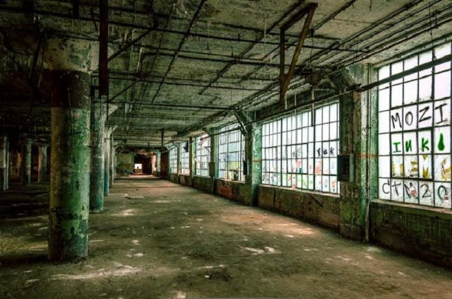 Abandon in 1993, the plant now looks more like a war-struck warehouse than a once top-of-the-line carriage and automotive body manufacturing facility.