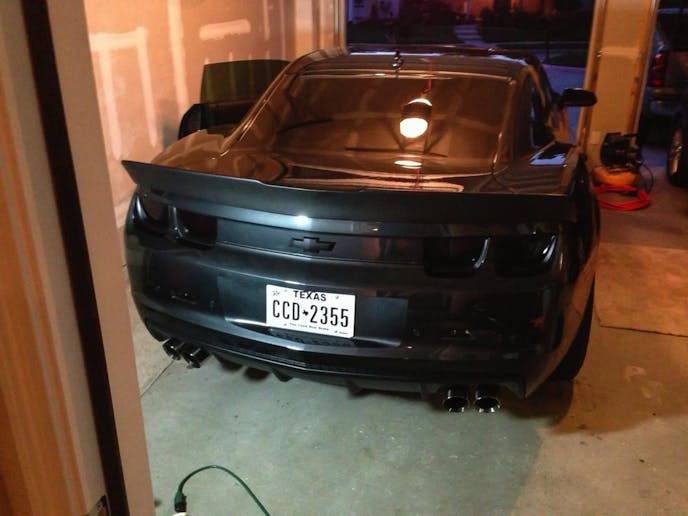 Disturbed figured that his wife had a family car and there was no reason to have two family cars… he could finally follow his passion after years of sacrifice. He ended up buying a 2011 Black SS/RS Camaro with a sunroof and GM dovetail spoiler in October or 2012. Immediately he had the windows tinted (which is almost a “must” in Texas).