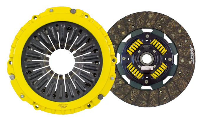 The ACT Street clutch kits combine the Heavy Duty pressure plate with a spring centered performance organic street disc. The disc features premium organic friction materials able to withstand increased heat and abuse, steel-backed linings for high-burst strength and modifications engineered for quicker shifting. The ACT Street clutch kit provides a moderate and consistent pedal feel, smooth engagement and significantly improved durability. These kits meet SFI Spec 1.1 and have increased torque capacity up to 635 ft.-lbs.