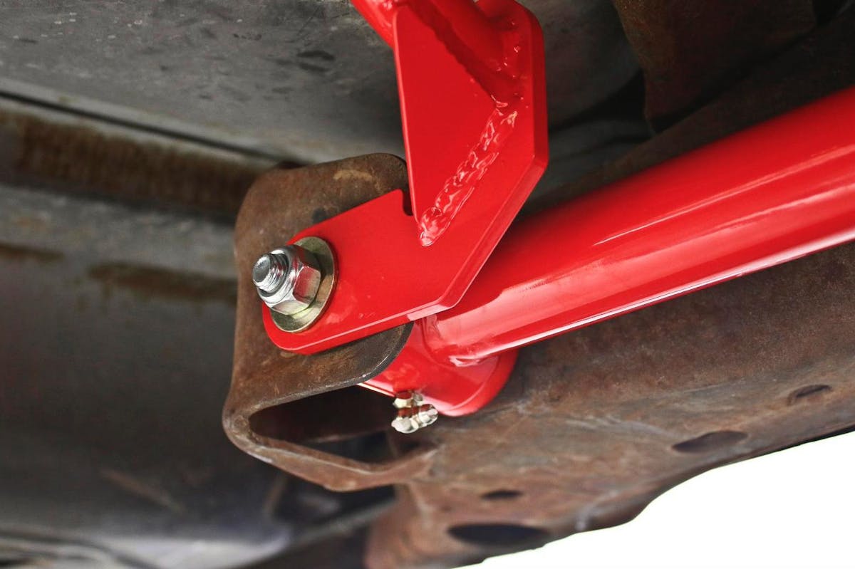 The BMR G-body Rear Suspension Kit is available in black hammertone and red powdercoat for long-lasting good looks. Installation time is about 4 to 5 hours. Finally, the G-body rear suspension kit is proudly made in the USA.