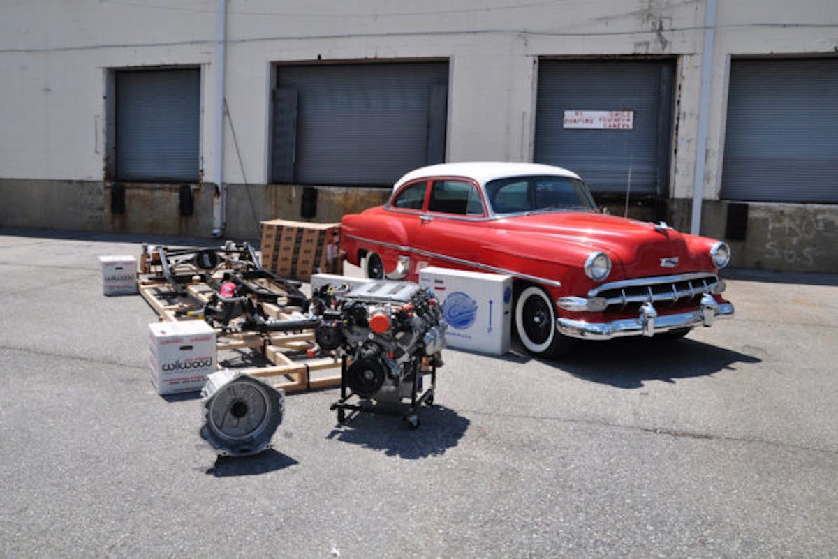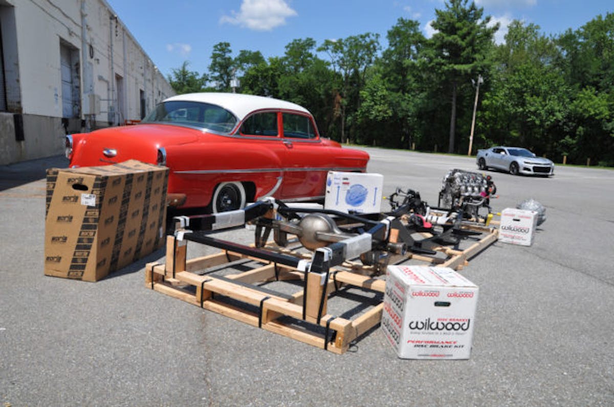 The factory frame of the Bel Air was adequate when the car was new, but now, not so much. J.C. is having the guys at Advanced Automotive Concepts slide a new Art Morrison GT Sport chassis with braced 9-inch rearend with 35-spline axles, and a Moser 3.50-geared center section. Strange double-adjustable shocks will eliminate the bounce at all for corners. Finally, a set of 13-inch Wilwood binders are mounted on all four corners, and large-by-huge wheels and tires will provide plenty of traction.