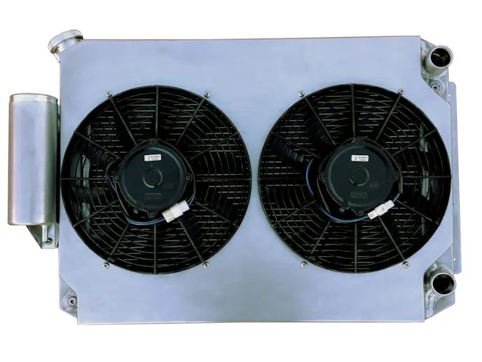 Their hand crafted aluminum radiators easily cool 500+hp LS, SBC, or BBC motors while looking beautiful doing it. The dual Maradyne fans move a whopping 3130 CFM of airflow. In addition, they have several enhancement options such as AC Condenser and trans coolers you can add. Finish options include their standard aluminum finish, polished aluminum, glossy black or matte black powder coat.