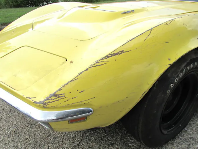 In the case of this one owner, 1969 L71 427 Corvette, it looks like the real deal. From the almost bald tires bias-ply tires, to the trailer hitch and fiberglass battle scars this thing is resplendent in it’s road weary, bug splattered beauty.