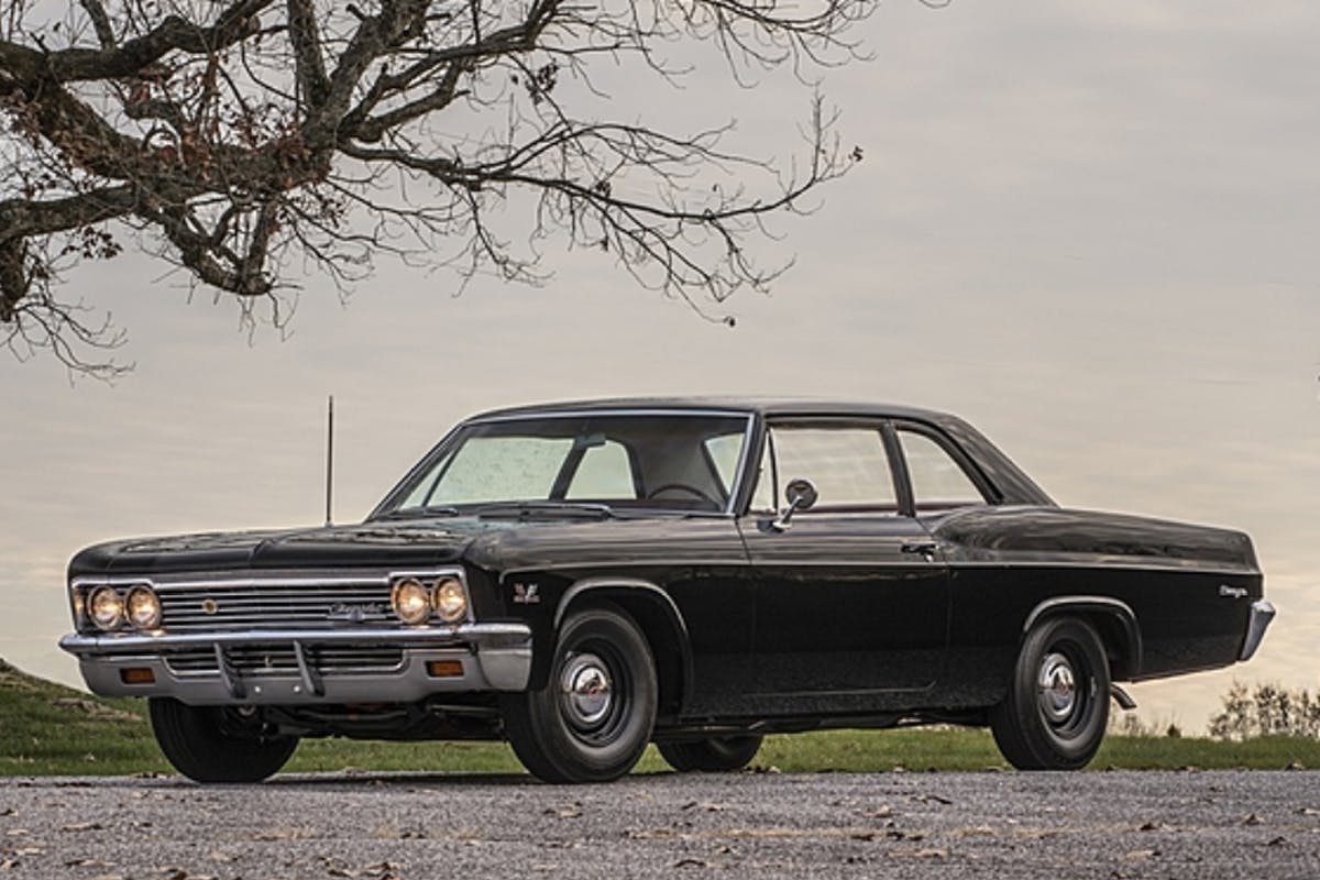 The Biscayne that is the focus of our attention is about to come up for sale at the August 2015, Mecum auction in Harrisburg, Pennsylvania. According to the paperwork that comes with the car, John Enlund III traded his 1965 Tri Power GTO for the Biscayne at Larson Chevrolet of Superior, Wisconsin. This Tuxedo Black-on-Red 1966 Chevrolet Biscayne came from the factory with the top engine available, the L72 427ci engine with 425 horsepower. In true musclecar fashion, a Muncie M21 four-speed transmission, and a 12-bolt Posi rear with 4.56 gears finish the drivetrain.