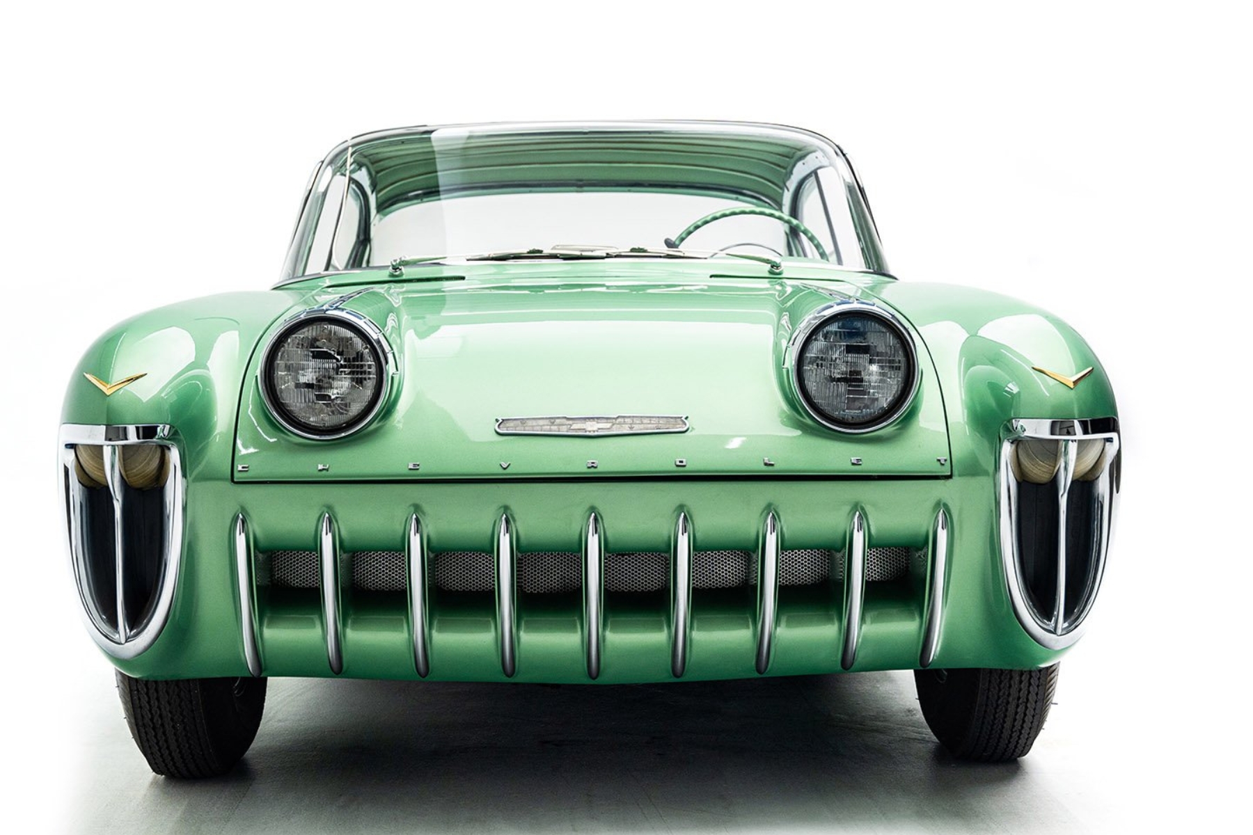 The Chevrolet Biscayne was never intended for production. Built under the direction of GM’s legendary styling chief, Harley Earl, the car served as a rolling design study, previewing advanced styling and engineering ideas. With its low-slung profile, wraparound windshield, and pillarless roofline, it looked like something out of a science fiction movie, yet it debuted in 1955, long before such designs became common.