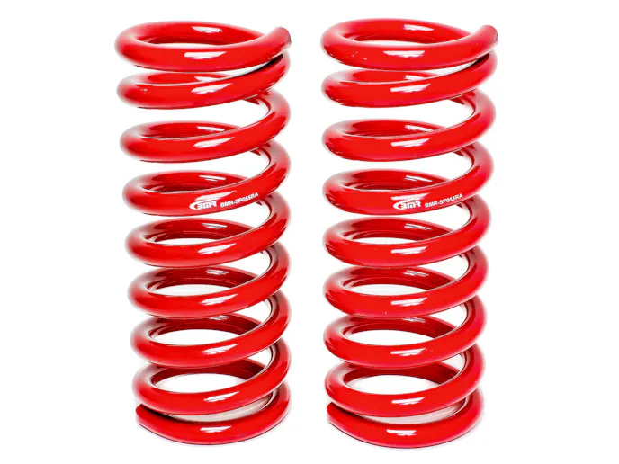Increase cornering ability and improve cosmetic appeal of your First-Gen F-body with Lowering Springs from BMR Suspension. Manufactured from chrome silicon high-tensile spring wire, these springs are cold wound on a CNC coiling machine that can adjust the spring diameter in real time to ensure that every spring is exactly the same. These springs will drop the front end of your Small-Block or Big-Block Camaro 2-inches and feature a 620 lb/in linear spring rate to give you great handling and a smooth ride. The BMR Front Lowering Springs (SP055 Small-Block, SP056 Big-Block) lower the center of gravity to allow the body to stay flat and level in the corners, while remaining soft enough for a comfortable ride on any road. Designed for both the street performance and pro-touring crowd. And like all BMR lowering springs, they come with a LIFETIME guarantee against spring sag. Available in red powdercoat for long-lasting good looks. Installation time is about 2-3 hours. Proudly made in the U.S.A.!