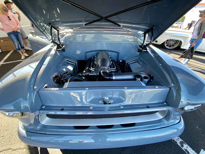 Inside, you’ll find more top-quality craftsmanship in the form of a SewCalRods custom interior. While you’re planted in the form-fitting seat, you’ll be looking at a set of Dakota Digital gauges, while the Restomod Air keeps you cool. What’s a hot rod without tunes, and for Sonic56, Kicker Audio fills the cab.