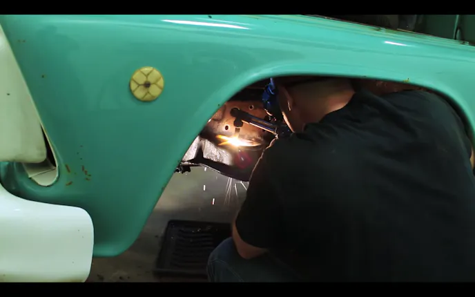 The most difficult part of the install is swapping out the old upper control-arm bracket. To get the new bracket in and ready to accept the coilover suspension, you need to remove the factory C10 bracket from the crossmember, which is actually riveted into place. While you are working on your suspension install, remember that these brackets collect dirt and crud, and you might have to dig to find the rivets.