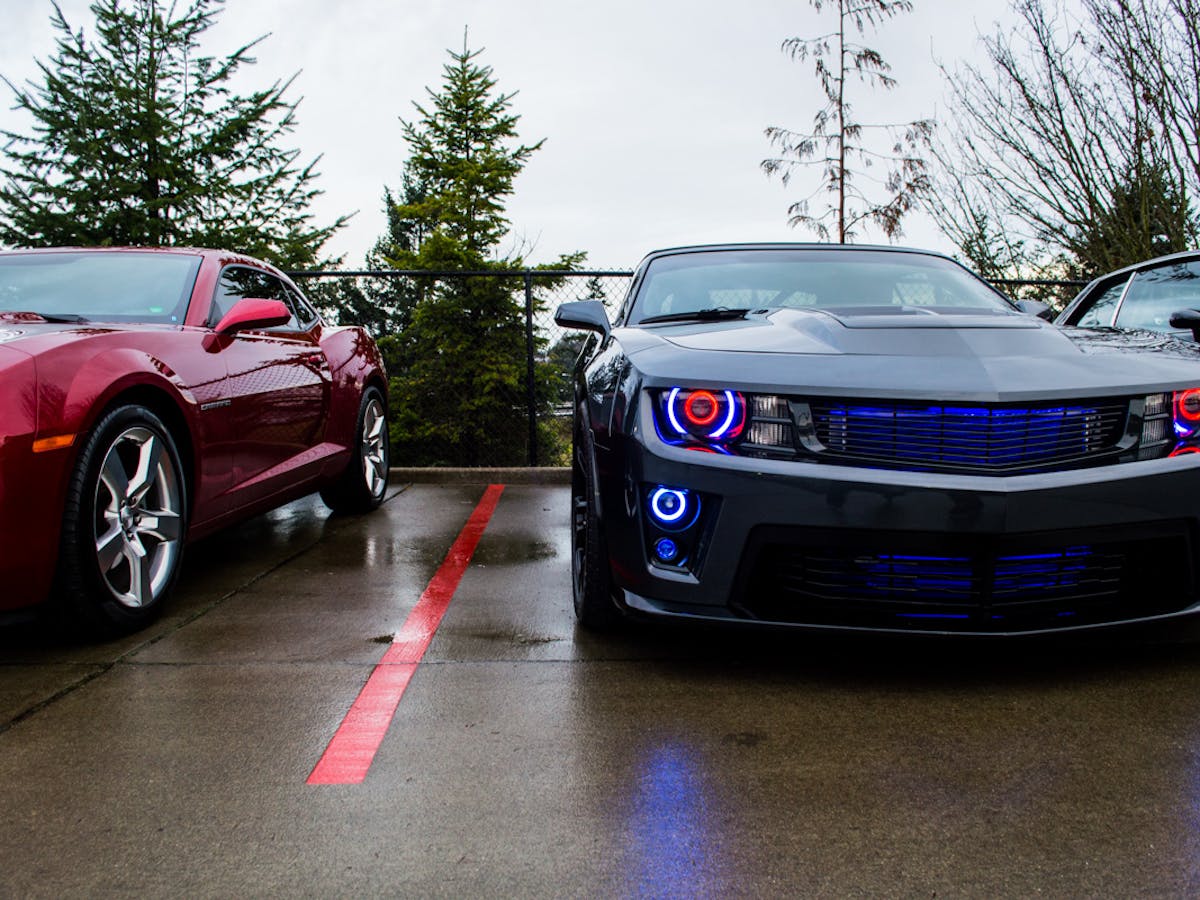 We found a row of newer model Camaros, and a couple of Corvairs parked together. It turns out the recent rainfall and wet pavement weren’t enough to discourage drivers used to the wet weather of the Pacific Northwest. The cars outside were pretty cool, but the really cool cars were inside and under cover.