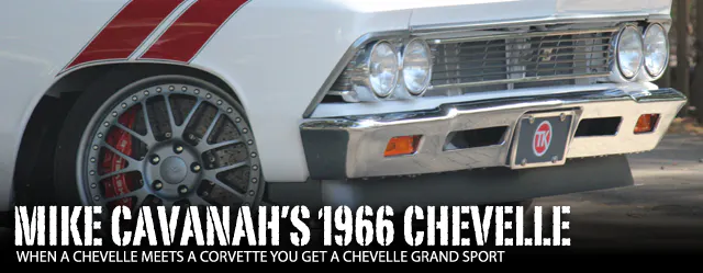 Introducing Mike Cavanah and his 1966 Chevelle “Grand Sport.” You’re probably telling yourself, they only made Super Sports, not Grand Sport Chevelles. You’re correct on that one, but if they did, this is how it would look and be outfitted. Just as if a 1966 Chevelle and a modern day Corvette had a baby, this wicked Chevelle was born. A combined effort between Mike Cavanah and Jason Pecikonis, owner of Timeless Kustoms, are the men responsible for the Chevelle Grand Sport.