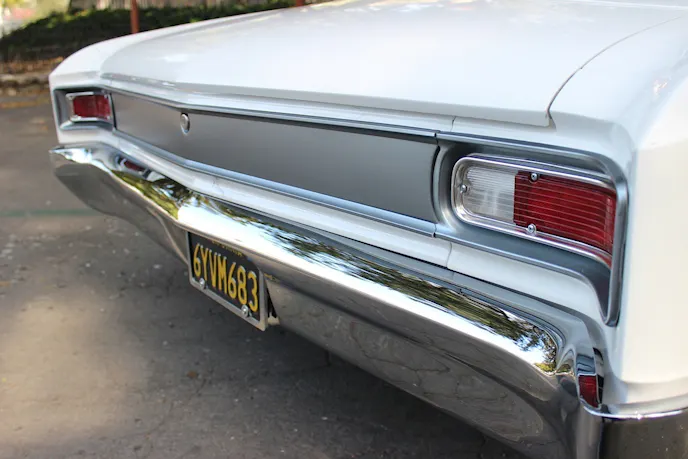 The exterior of the Chevelle looks fairly stock. However when you look closer there has been some extremely well executed changes that really set the car off. To start, the drip rails were shaved off. From there, the door handles were also removed for improved aerodynamics and a cleaner look. The body lines have been massaged a bit too, just enough to make you look twice, but not know what’s been changed. A completely custom front spoiler was added to the car as well to help with air flow and lead to the low look of the car. The hood was also modified with induction cooling vents to keep the car running cool even in the Southern California heat.