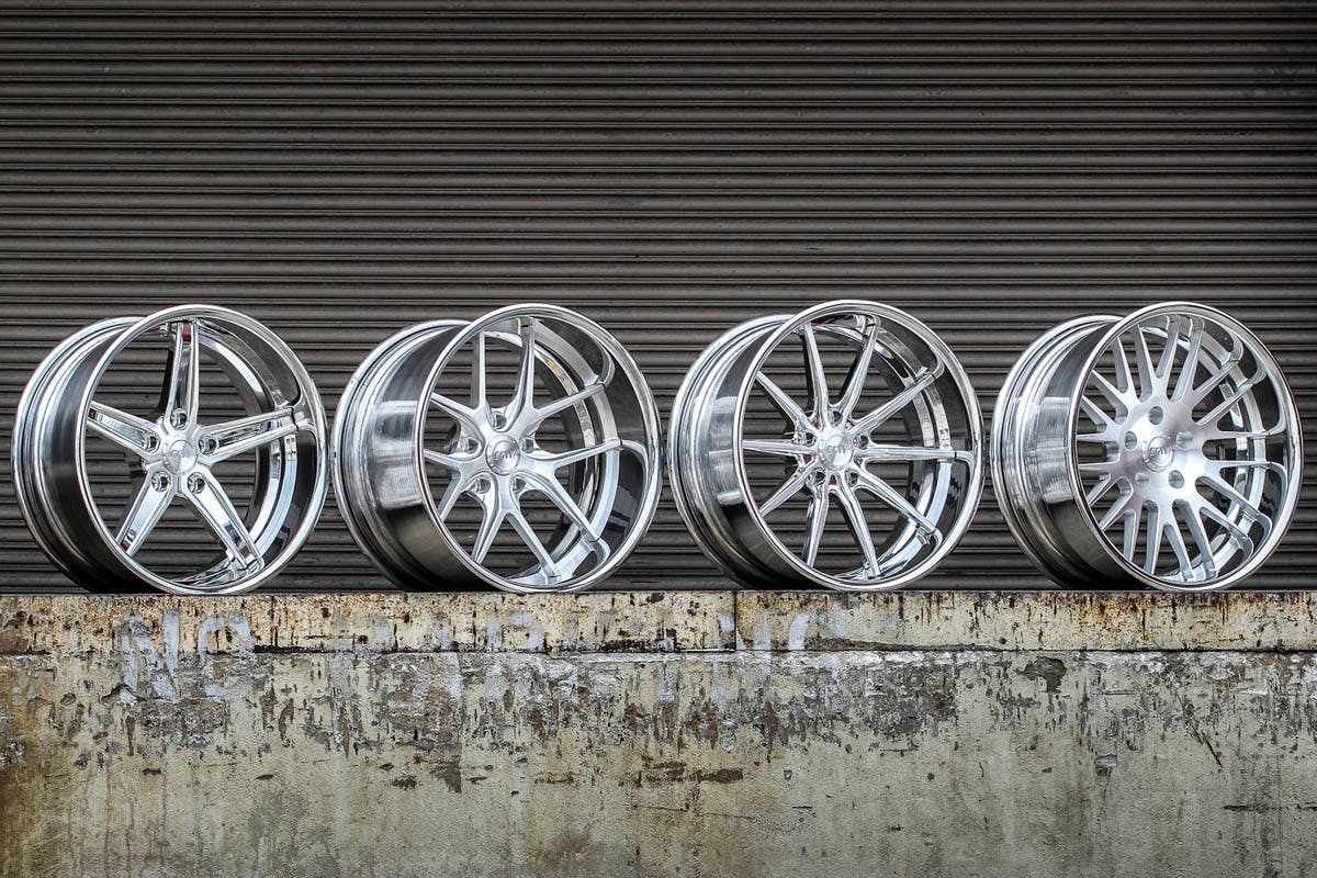 “Each design features aggressive race-inspired styling with depth and dimension not commonly found in a two-piece wheel,” explained Kern. “Construction begins with forging the center section out of premium 6061-T6 aluminum for superior strength. Each center section is then precision CNC machined to exact tolerances. After machining is completed, we powder coat the center section using only the best and most durable powder coat materials to provide a great custom finish and long lasting protection. We then mate the center section to a high-quality polished 6000 series spun aluminum rim at the offset specified. The result is the highest quality wheel, tailor-made for each customer’s car.”