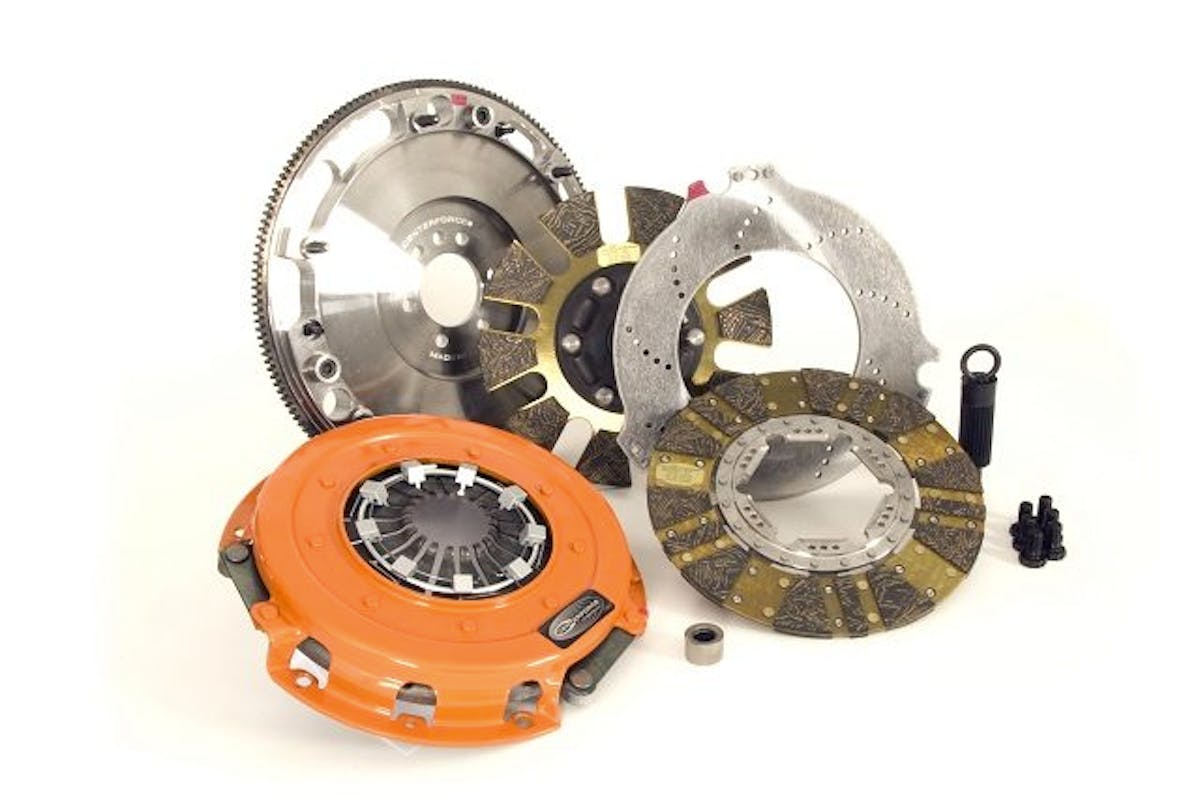 Centerforce DYAD DS Twin Disc Clutch kits come pre-assembled and include the pressure plate, floating disc, floater, drive disc, flywheel, pilot bearing, alignment tool and ARP fasteners.