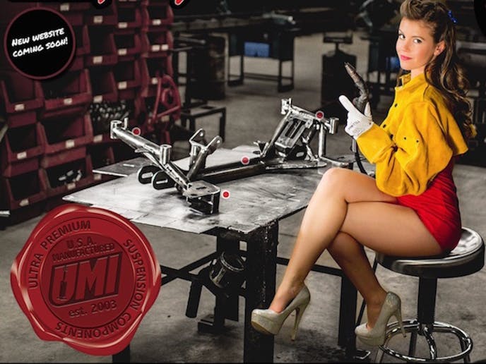 While we are not sure if the beauty pictured in the lead photo is one of the UMI employees, but we do know that the company’s 35,000 square-foot facility staffed with 30 highly-skilled employees, including the owner, Ryan Kirkwood, who still works on the shop floor TIG welding A-arms from time-to-time. Our inside source tells us that Ryan would rather weld than do paperwork.