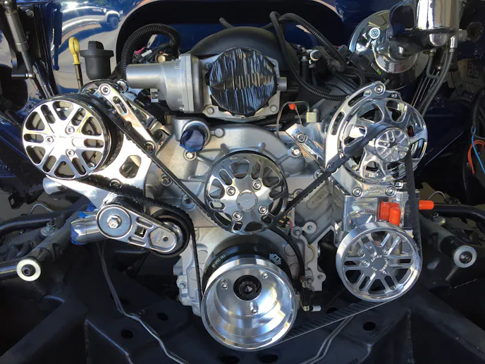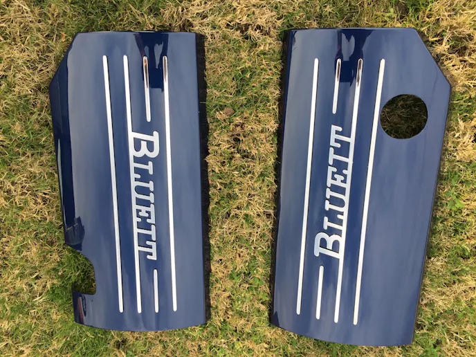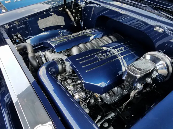 As for the namesake of the car, Randy did a fine job explaining that. “The LS engine is not nearly as nice looking as the old school ones with fancy valve covers and Holley carbs, so you have to try to make them look good,” He said. “I found a company in Texas that makes engine covers out of aluminum and shaped them as I wanted—it covers the coils, fuel runners, and injectors. My good friend, Dan Duffy, from Georgia, had the metal trim pieces made after I decided on the name of the car, Blueit. The name comes from the fact the car is blue with lots of blue accents, and that when people asked me where my money went I would tell them I blew it.