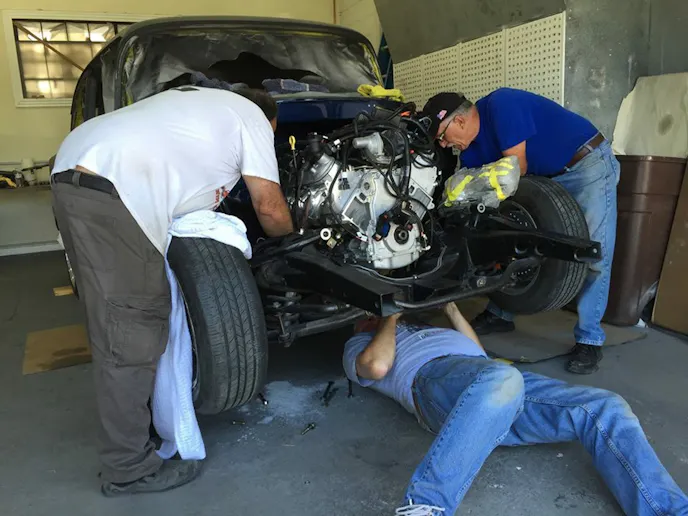 The project hit the ground running as Randy and Rick Peterson, got to work stripping the car and getting it ready for paint. They mocked up the engine, modified the engine mounts, welded in the brackets for his new 22-gallon fuel tank from Rick’s Tanks, gutted the wiring, and took off all of the removable parts. The metal work consisted of repairing old repairs that previous owners had done.