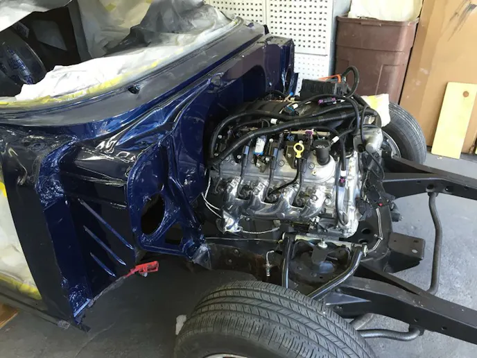 Randy started ordering parts, and if you’ve ever done a restoration to this scale, you know there are a lot of parts involved. “My living room was filled with boxes of parts, this didn’t impress my wife too much, but she was understanding,” Randy explained. “Remember, she had her kitchen!” He started by ordering a connect-and-cruise LS3 and 4L70 combo with a computer and complete wiring harness. “I went this route, as I had heard from a few folks using junkyard pieced together projects having communication issues with computer and parts, the LS stuff was all foreign to me, so I didn’t want the learning curve to be too much.”