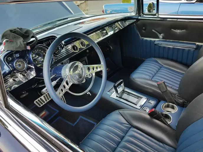 While the exterior of the car is absolutely stunning, the interior is equally impressive. Randy sourced the upholstery material from Ciadella’s, but had a local shop, Super Auto Upholstery do the stitching. They did the seats, door panels, and console, but gave them to Randy so he could do the install himself. The headliner is made from a cloth that closely resembles the original material that would have been used.