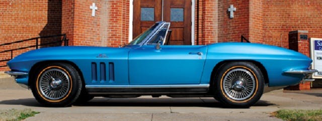 Lucky for Ess, the car may have traveled a long road to become part of his life, but it didn’t lose any of its character along the way. Purchased from ProTeam Corvette in Napoleon, Ohio in November of 2011, the fully restored Sting Ray convertible features its numbers matching 427/475 HP big-block and four-speed Muncie M21 transmission, as well as much of its original interior. The car also retains many of its factory-correct options like a Positraction rearend with 3.70 gears, power steering and brakes, F-41 heavy duty suspension and AM/FM radio.