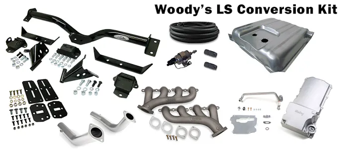 We recently learned the crew at Woody’s has used their years of building experience to take the guesswork out of upgrading your Tri-Five, this time bringing you a complete LS installation kit!