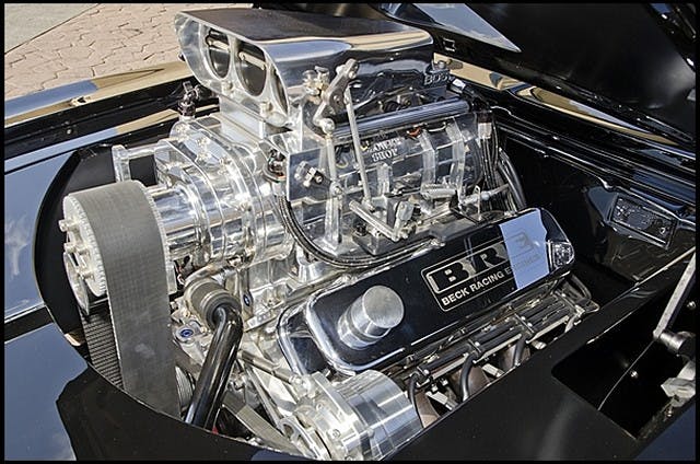 Featuring a typical pro-street style blower sticking out of the hood, this Camaro is powered by a 540ci engine from Beck Racing Engines tied to a custom TCI transmission with overdrive from Gear Vendors. This combination gives the car an amazing 800hp and 1200 lb-ft of torque.