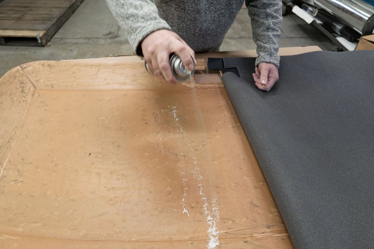 Featuring no ODS (ozone-depleting substances), the aggressive Spray Adhesive dries quickly and clear, is California compliant, and is made in the USA. It creates a strong heat- and water-resistant bond when installing thermal shielding, headliners, sound control materials, carpet, and more.