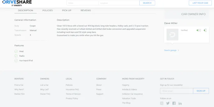 We were extremely curious about this program and reached out to Hagerty and spoke to Steve Haas, senior manager of DriveShare operations for Hagerty. He told us all about the program and how it works for both sides of the coin: the renter and car owner. A few examples of cars that are available can be found here: A Camaro, a Corvette, and an Impala Convertible.