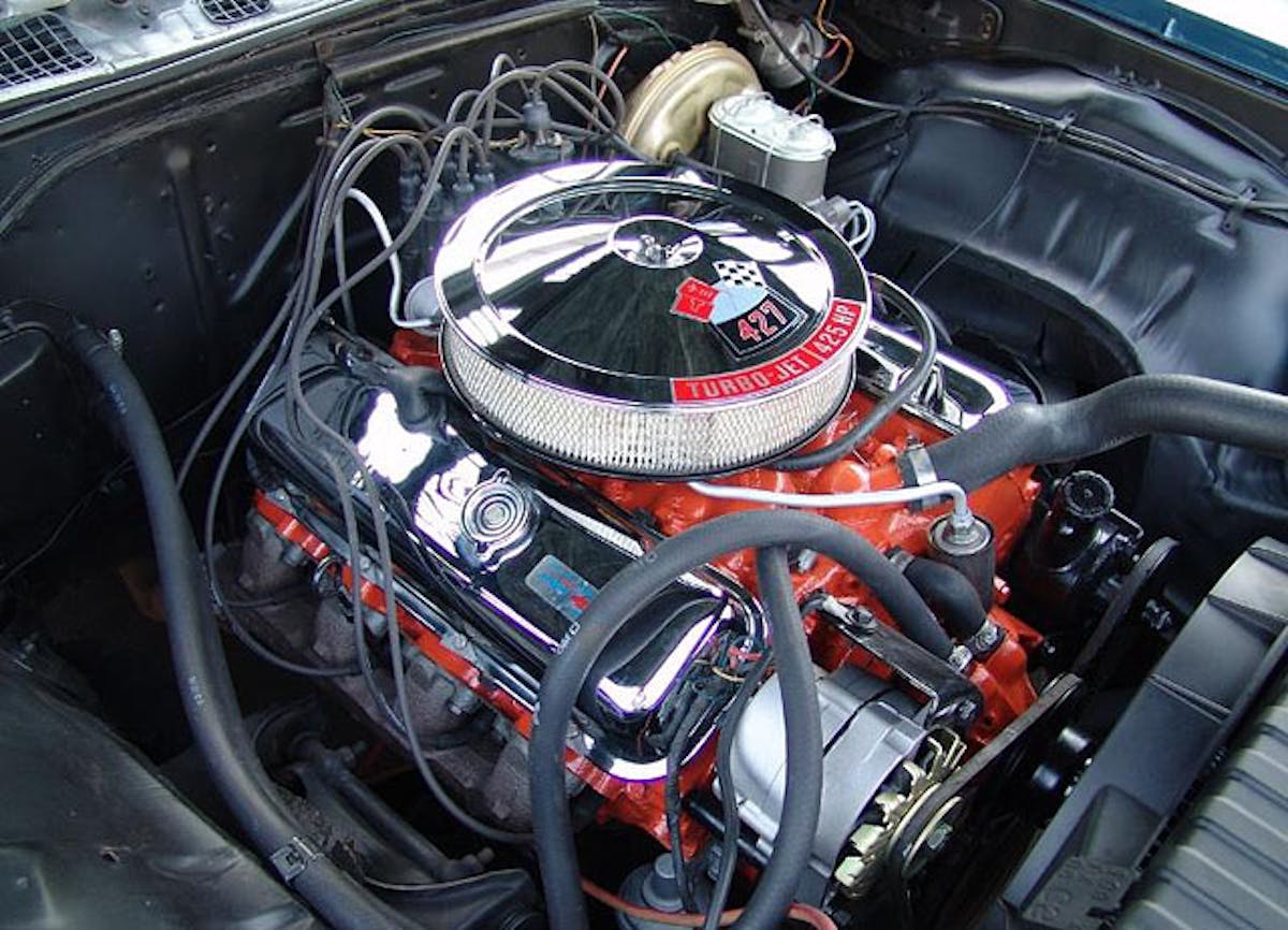 Chevrolet did offer a range of optional V8’s for the big cars, starting with the 350cui in either 255hp (LM1) or 300hp (L48) versions. Beyond this lay the 265hp L66 396cui V8 and then the 427 was offered in 335 hp (LS1) or 390 hp (L36) configurations.
