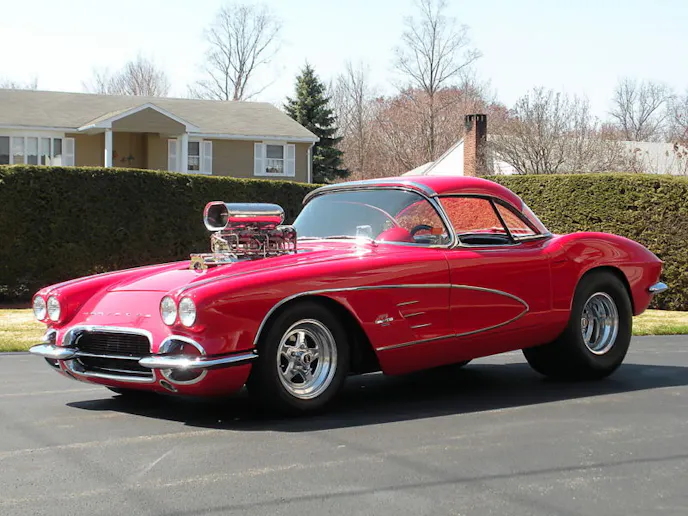 We stumbled across this wild pro street Vette on eBay and couldn’t resist telling you about it. This thing is insane, from the huge Mickey Thompson rear tires to the blown 700 horsepower small block 350, it screams hot rod all over it.