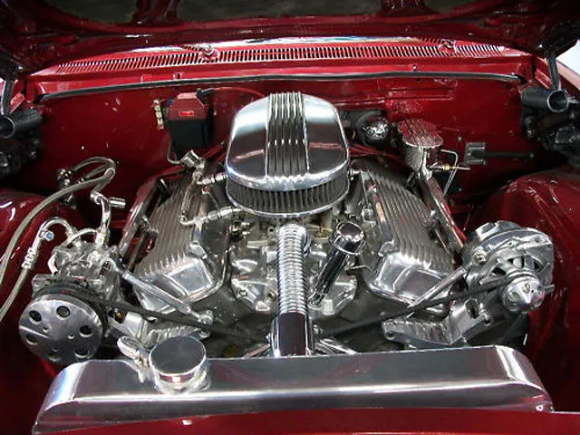 When equipped with dual Carter AFB four-barrel carburetors, a special solid-lifter camshaft and lighter valve train, the thundering V8 was rated at 409 horsepower, giving it the same magical one-hp-per-cubic-inch status that had only been achieved previously by the fuel injected Corvette’s 283 V8 in 1957.
